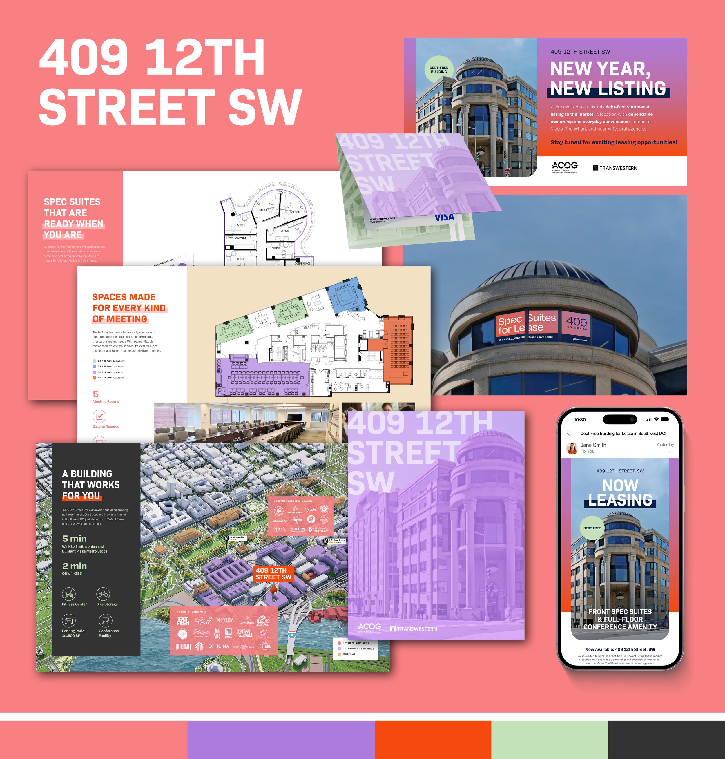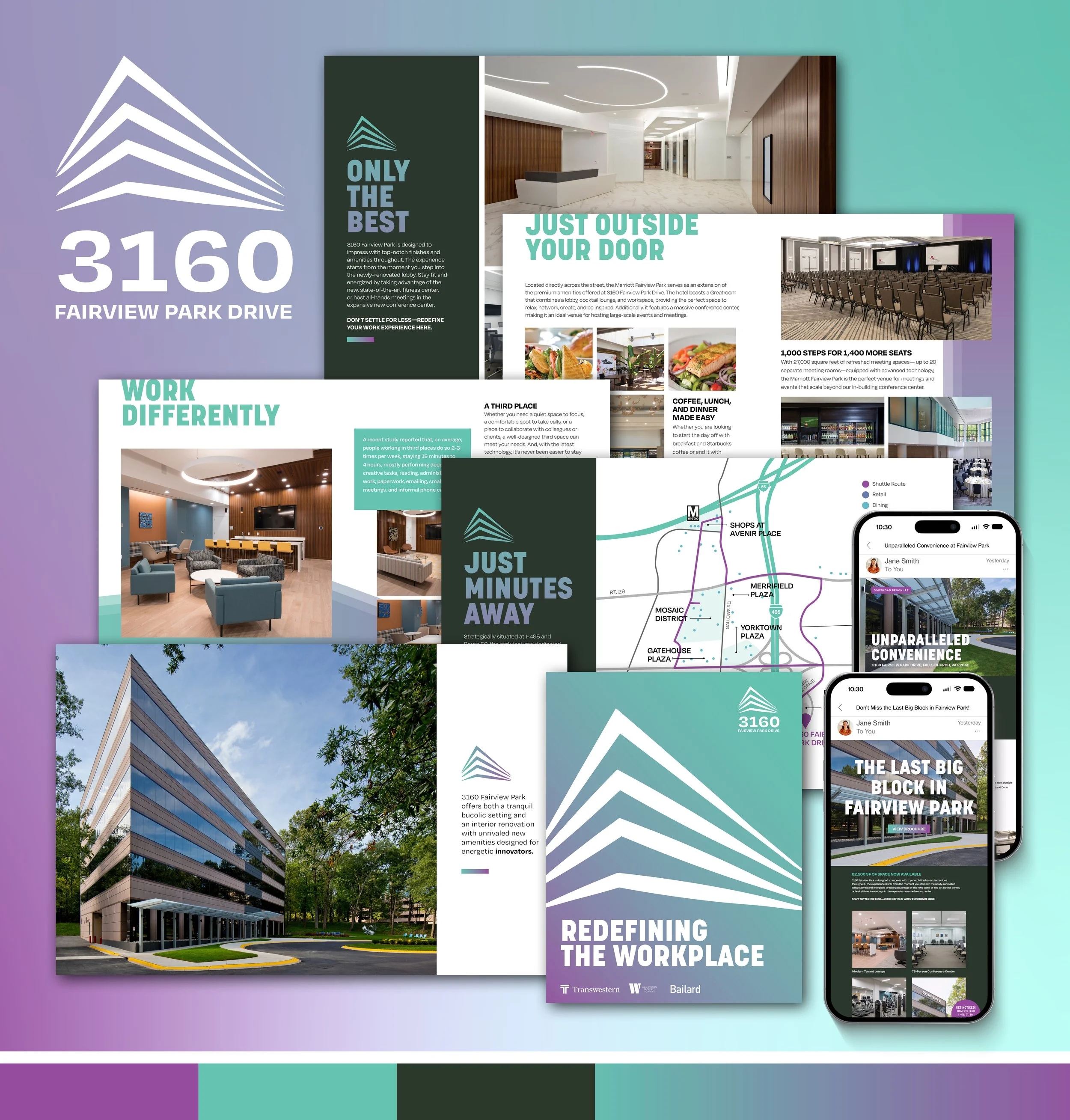 A selection of building identity systems developed at Transwestern, each shaped by the property’s character, positioning, and audience. Created in collaboration with internal teams and external partners.
